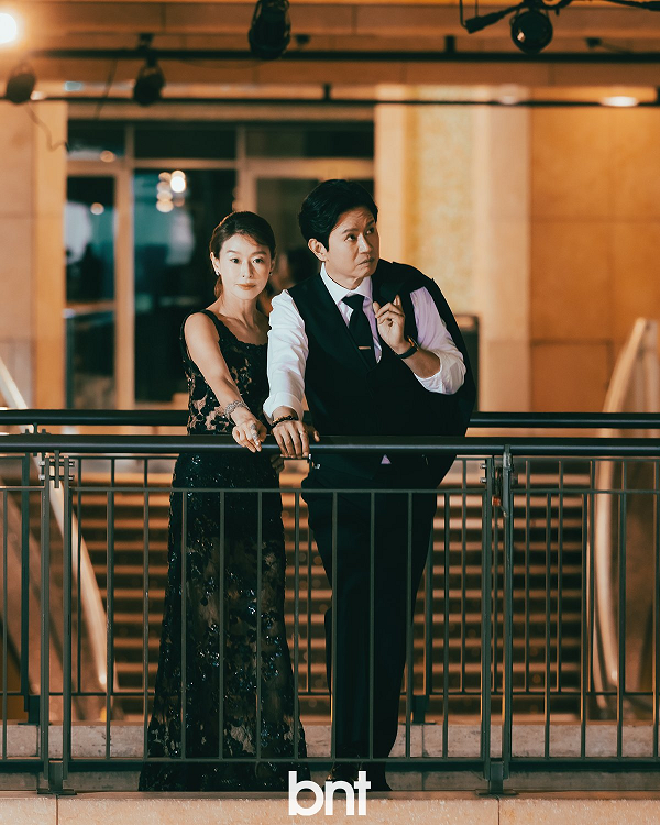 两位演员以黑色系正式礼服亮相,完美演绎了高雅与冷峻并存的电影感氛围。金旻钟身着搭配黑色马甲与领带的经典燕尾服,立于象征“奥斯卡红毯”的杜比剧院阶梯上,举手投足间尽显“绅士的品格”;艺知源则身披蕾丝透视长裙,刺绣与珠饰在柔光中闪耀交织,呈现出克制而又极具张力的华美气场。